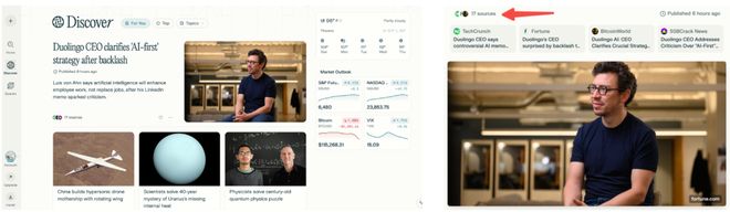 同時,原生AI新聞產品帶來的用戶體驗與傳統新聞截然不同。