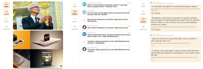 同時,Particle.news將媒體素材、文章和引用分別單獨進行了處理,方便查看。