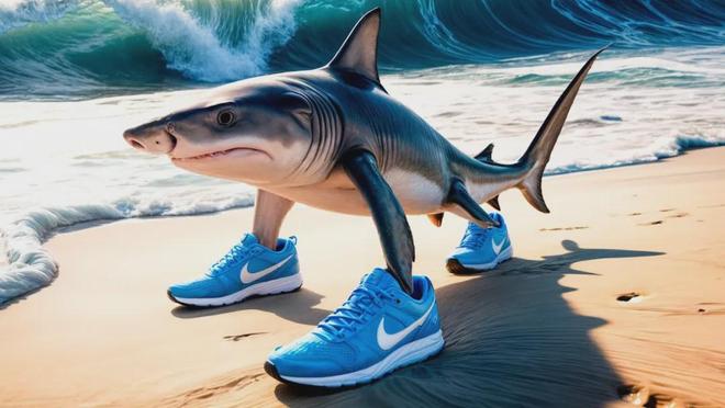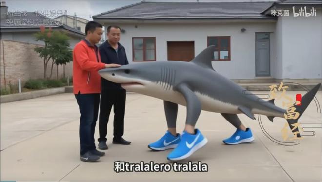 直到第一個AI山海經形象誕生也依然如此。2025年1月,一條穿着三隻耐克鞋的鯊魚圖片作爲第一隻“神獸”出現時,緊跟着這個形象的就是一大段涉及到宗教侮辱的意大利語髒話輸出。