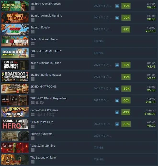 把“腦腐”這個詞輸入到Steam裏,則立馬能蹦出幾十個遊戲。