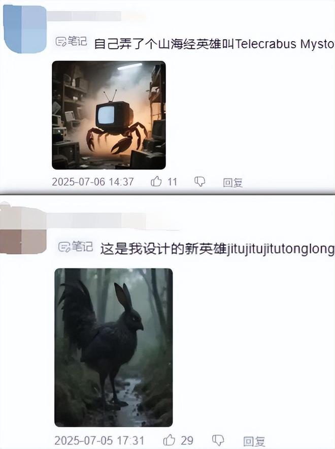 除此之外,神獸粉絲們還會像追星一樣,不計成本地爲每隻神獸畫圖、做動畫;在幾乎所有評論區裏,還都能看到人們煞有介事地討論着神獸們的戰鬥力和玩法,就像真的存在一個叫做《AI山海經》的遊戲一樣。