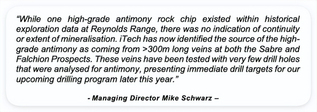 ITM回覆澳交所問詢時表示,股價異動恰逢公司披露北領地Reynolds Range項目發現高品位銻礦區之際。