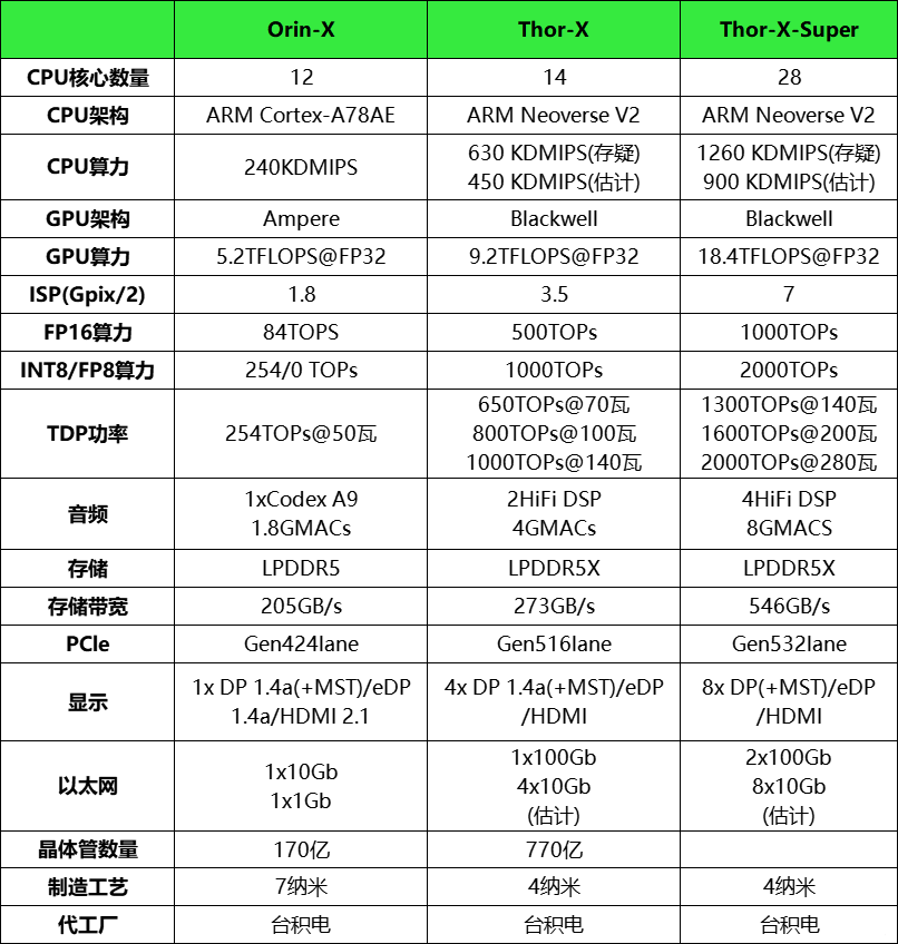 目前,行業應用的主流英偉達Orin芯片單顆算力254TOPS,且不支持直接運行語言模型。而英偉達Thor芯片由於存在設計缺陷和工程問題,實際算力與宣傳數據相比大幅縮水,其中Thor S、Thor U版本的算力約為700TOPS,而Thor Z基礎版算力約為300TOPS,對於端到端+VLM的算力需求而言,都依然緊張。