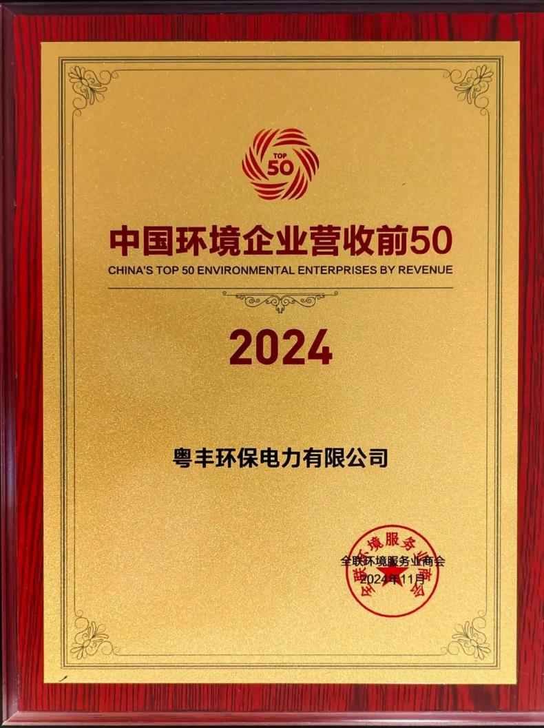 ▼粵豐環保榮登「中國環境企業營收前50」排行榜。圖片來源:粵豐環保
