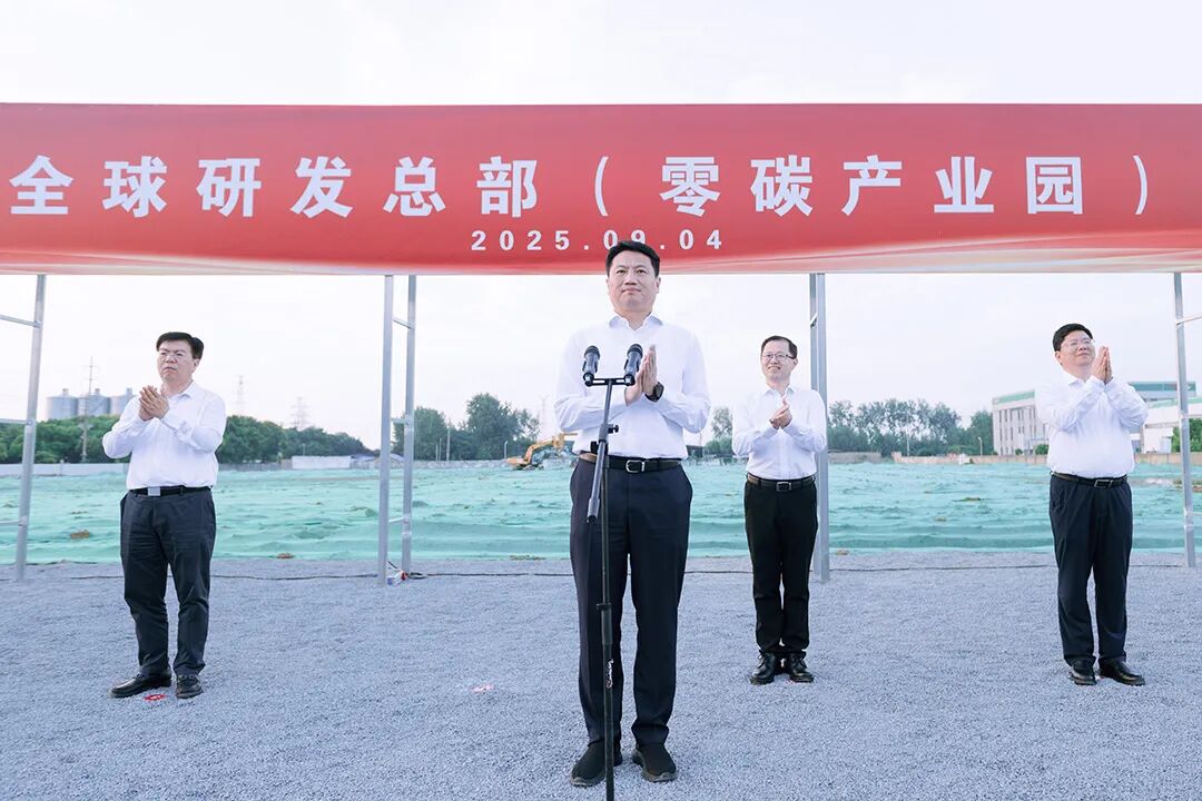 雙登股份董事長、總裁楊銳博士在開工儀式致辭。「零碳算力地球」的實現離不開儲能技術的支撐,全球研發總部(新型儲能零碳產業園)是雙登立足全球視野、緊扣「人工智能+儲能」發展方向、全力打造雙登踐行 ESG 承諾、推動可持續發展的 「核心載體」。