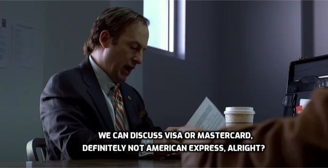 圖注:美劇《絕命毒師》也曾調侃過運通的高收費,索爾古德曼明確表示不收運通卡。