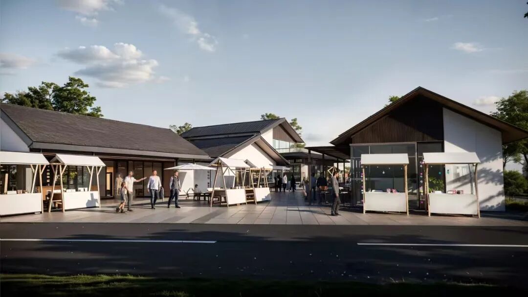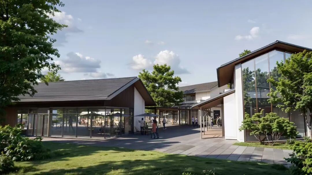 效果圖此外,在稠巖村的共富聯盟中心和科技小院項目建設現場,同樣熱火朝天。這個被稱作大李祖片區鄉村版「鄰里中心」的項目,規劃一號樓提供教育、衛生、養老等公共服務,二號樓設商超、菜市場。