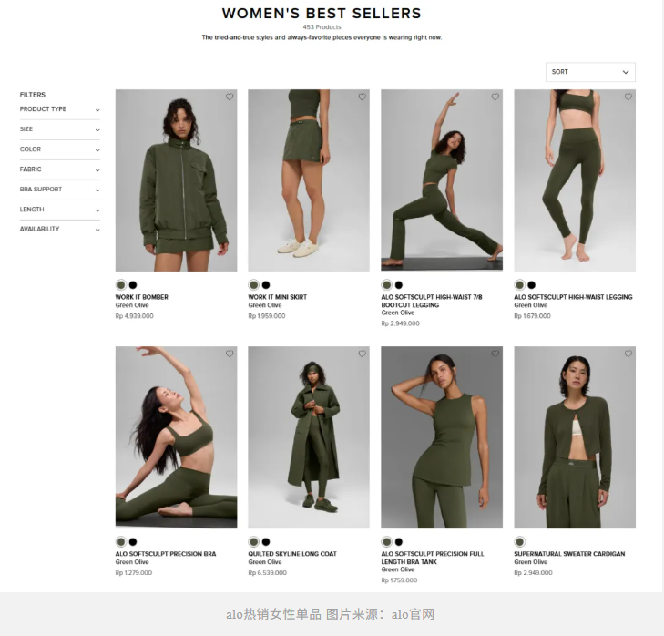 同時,alo產品也擅長於以色系創造氛圍感,經常上新同色系多款單品,在搭配方面更具靈活性,不同單品之間風格更統一,進一步帶動消費者多件購買行為。