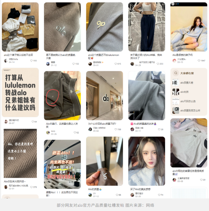 收到alo官網正品的消費者,紛紛分享自己的購物體驗、對產品質量的吐槽。質量差、易起球、logo起翹、脫線等問題引發消費者不滿,質量與價格的嚴重不對等更是為alo的中國行增加了不確定性。