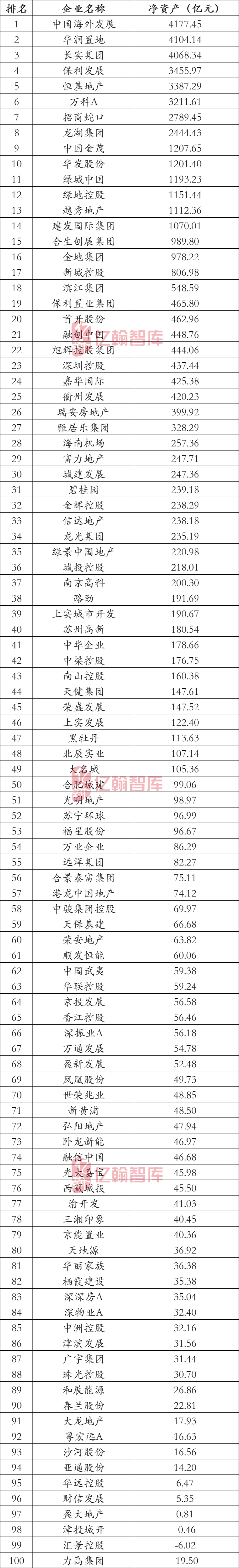 圖表:2025年6月末典型房企淨資產(股東權益合計)TOP100