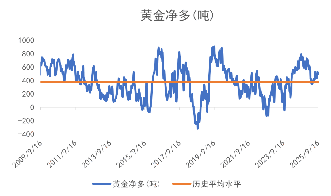 基金於美國期貨黃金淨多年初至今跌12%(2024年累積升35%)