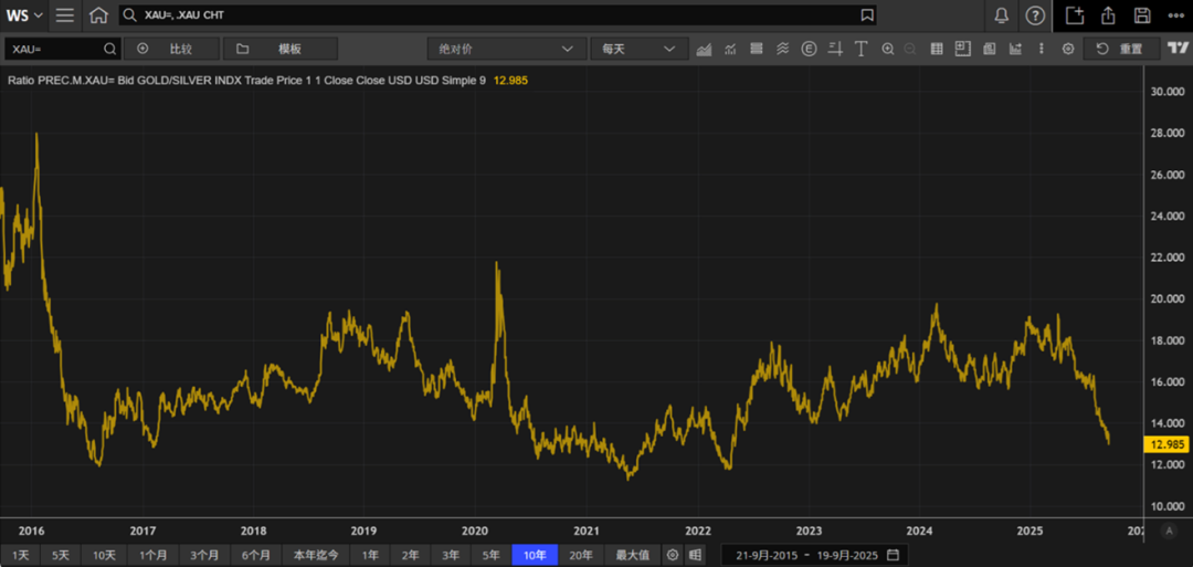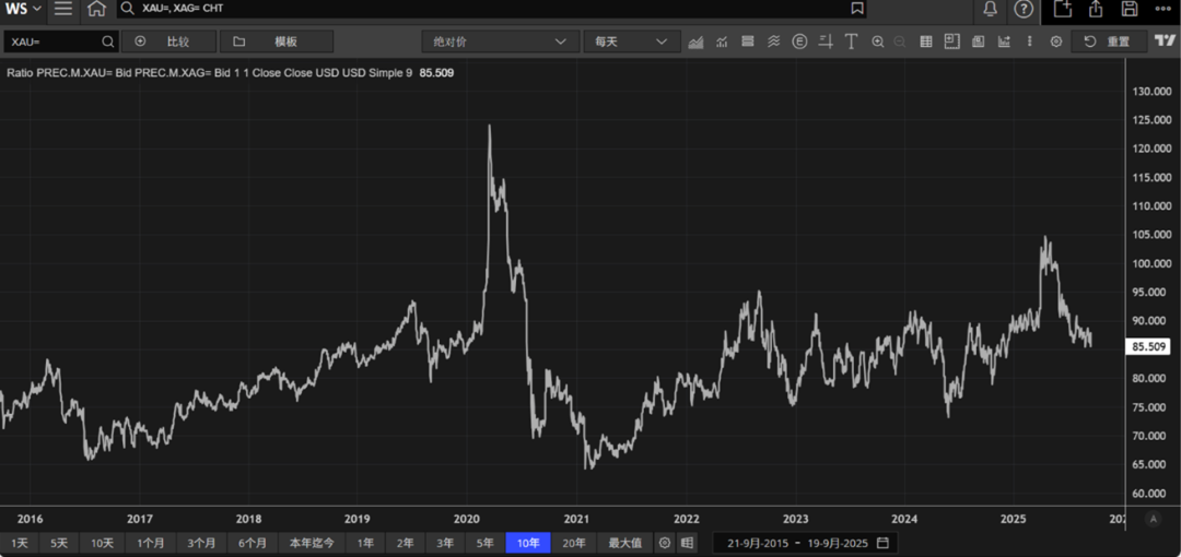 金銀比是其中一個量度市場情緒的指標。 歷史上金銀比在大概16-125倍水平運行: