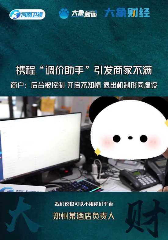 2025年7月,鄭州多家酒店商戶舉報其在攜程平臺上架的酒店房間價格遭到攜程平臺私自修改。多位酒店負責人稱,攜程平臺要求酒店商戶開通名為「調價助手」的改價工具,通過技術手段修改酒店房間價格,並且不經商家允許修改商家的活動折扣。