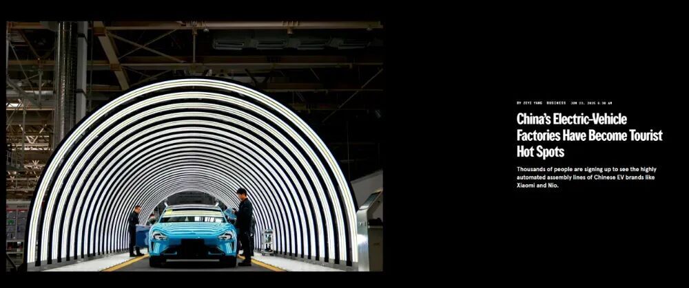 圖注:《連線》雜誌網站今年6月的報道,報道稱小米汽車工廠已經成為「旅遊熱門地」,成千上萬的人報名參觀工廠的高度自動化裝配線。