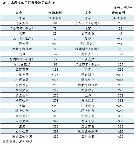 套利空間而言,預計山東獨立煉廠汽、柴油的套利空間或持續欠佳,主要流通區域仍集中在山東及周邊省份,距離較遠的省份仍難以觸及。