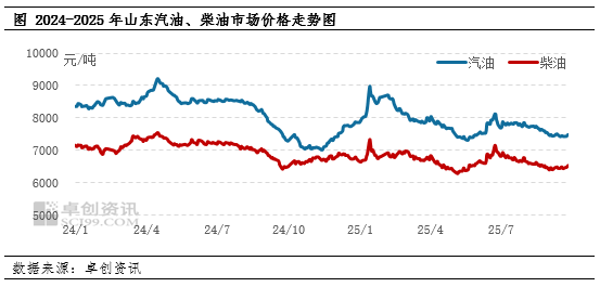 綜合分析,在原油下行指引,供應穩定,需求端難有提升背景下,預計10月份山東汽柴油市場價格或呈震盪下滑走勢,均值水平繼續下滑50-100元/噸。