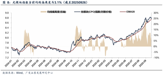 當然,在三季度成長股已經漲幅較高的情況下,下一階段的主要任務是對產業主線進行甄別和篩選。我們分別從「均線偏離度」和「看漲期權屬性」兩個視角進行篩選: