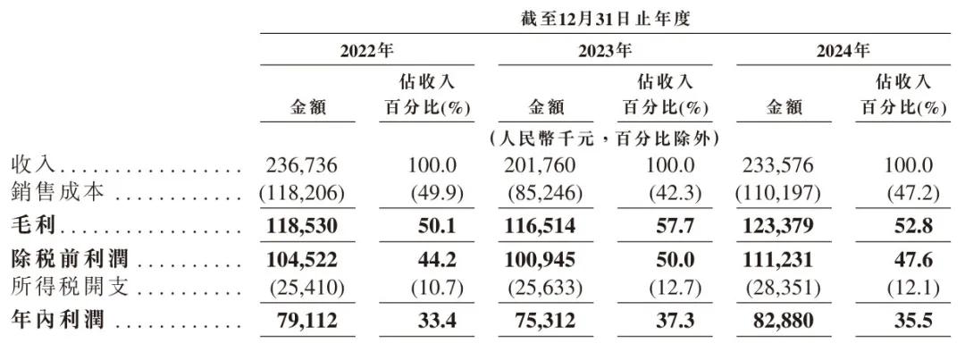 紅星冷鏈2022年、2023年、2024年年內利潤分別為7911萬元、7531萬元、8288萬元;年內利潤率分別為33.4%、37.3%、35.5%。