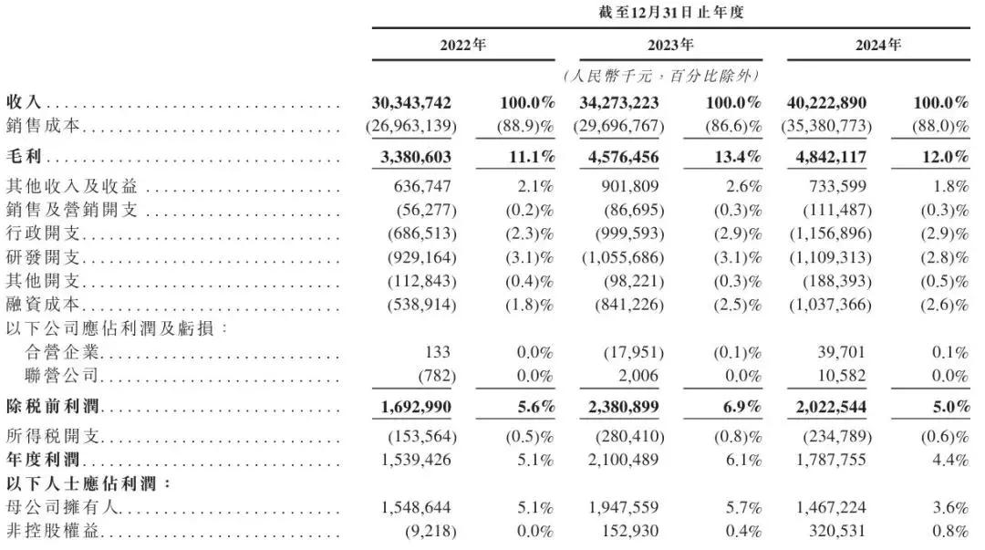 招股書顯示,中偉新材2022年、2023年、2024年營收分別為303.44億元、342.73億元、402億元;毛利分別為33.8億元、45.76億元、48.42億元;毛利率分別為11.1%、13.4%、12%。