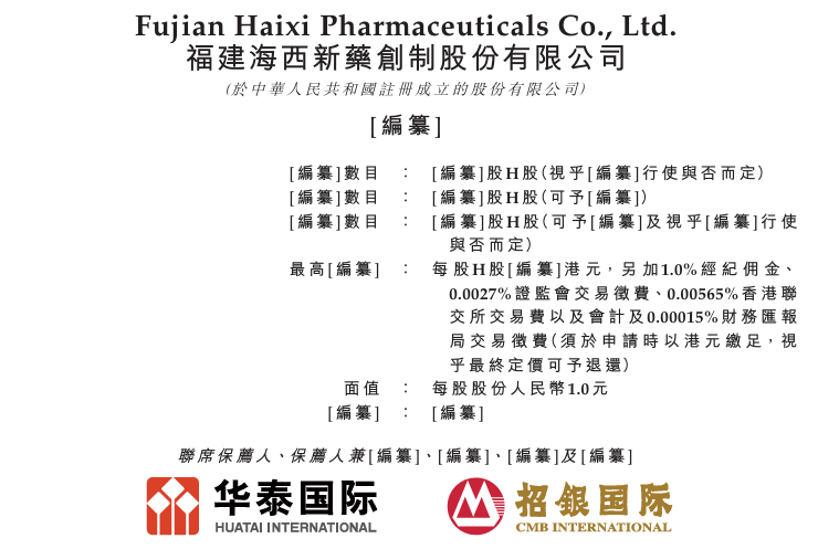 智通財經APP獲悉,據港交所9月29日披露,福建海西新藥創制股份有限公司(以下簡稱:海西新藥)通過港交所主板上市聆訊,華泰國際和招銀國際為其聯席保薦人。