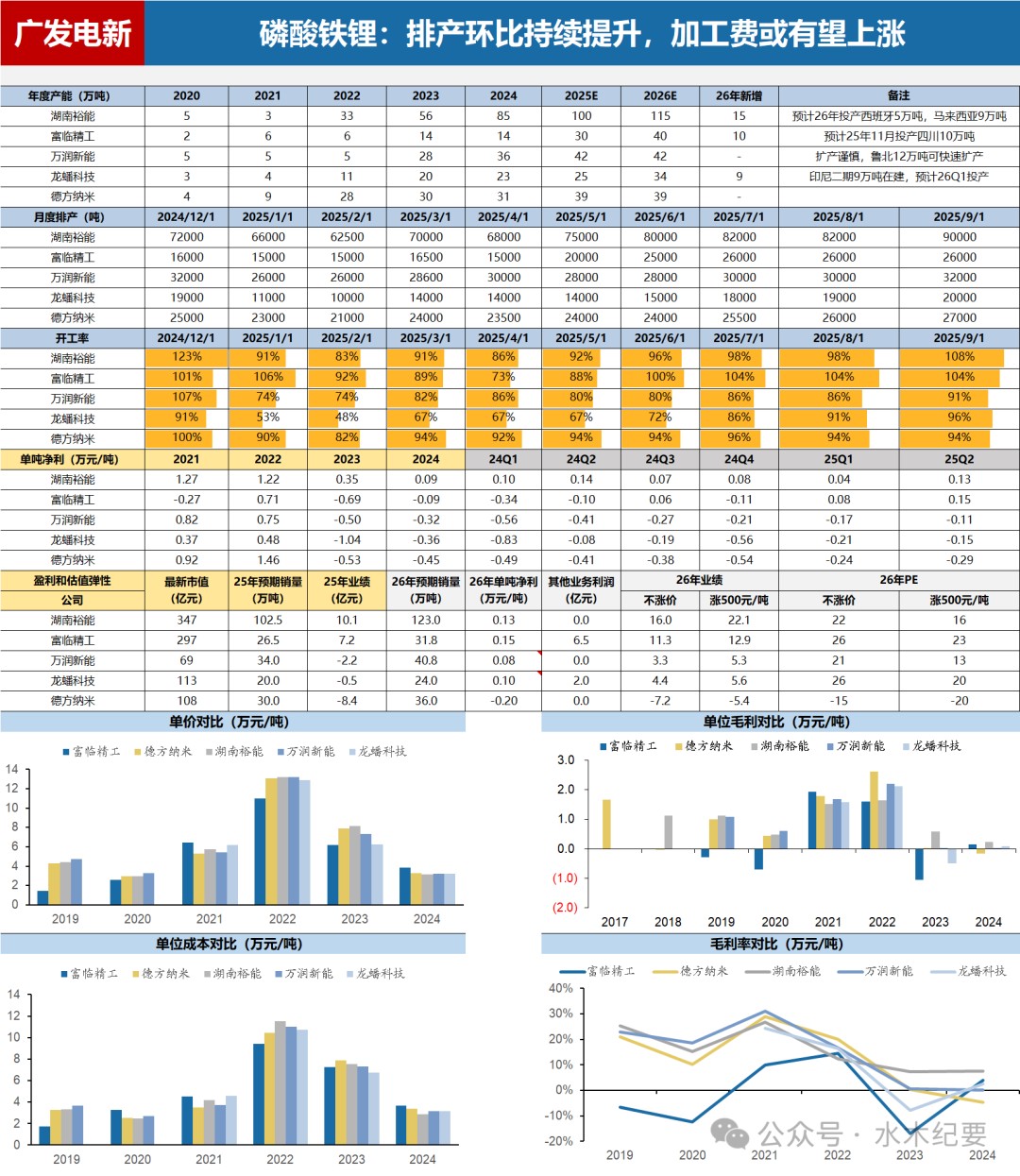 後續主要增量:預計11月還有邦普20萬噸磷鐵投產,年底龍蟠11萬噸投產,26年一季度國軒10萬噸和邦普25萬噸投產。