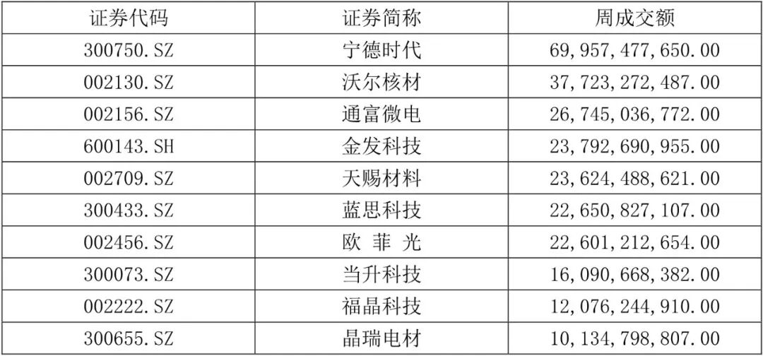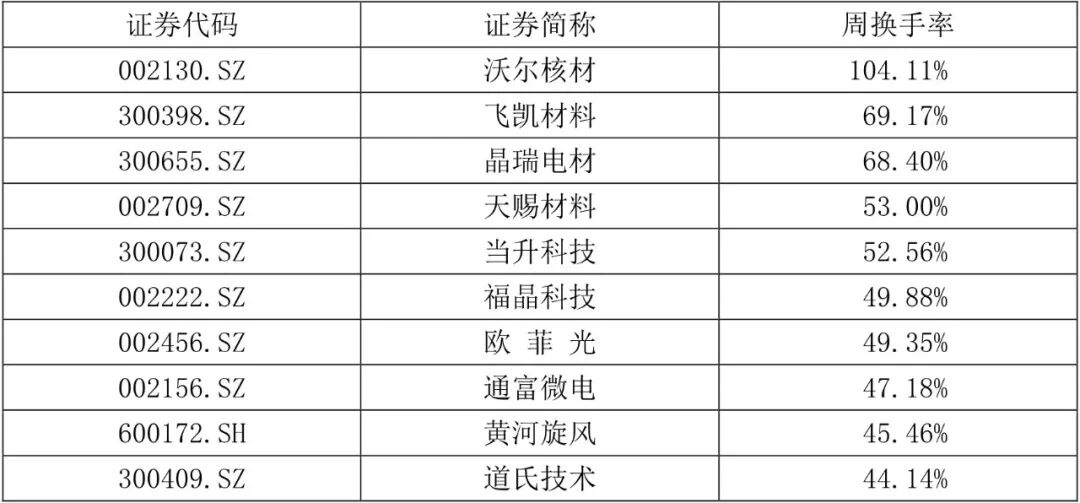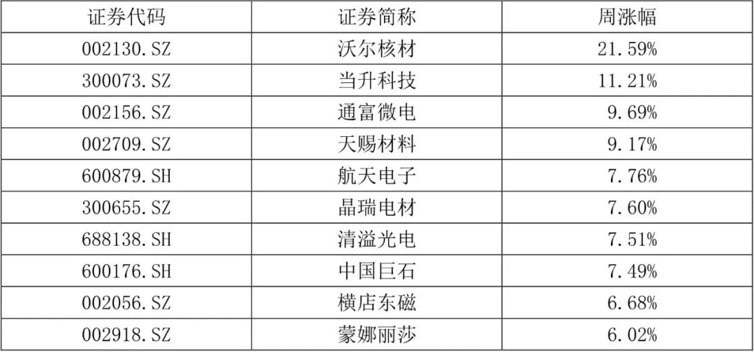 周漲幅最大是沃爾核材,全週上漲21.59%。公司根據行業發展趨勢和客戶需求,持續推進技術迭代和產品升級,不斷提升自主研發能力,並於近日接待南方基金等多家機構調研。首先,公司224G單通道高速通信線是目前市場上最前沿的產品,該產品主要應用於國外高端市場,2025年上半年度實現了快速增長;其次,從現有市場情況來看,公司的高速通信線具有良好的高頻性能、高可靠性、低成本、完善的產業鏈配套等優勢,其未來應用領域和市場需求具有較大空間。同時公司也緊跟行業發展趨勢和行業頭部客戶需求,正在推進下一代單通道448G高速通信線的樣品開發工作。