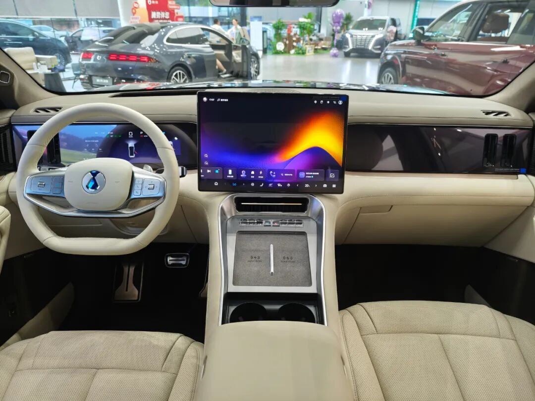 另外,雖然騰勢N8L與騰勢N9的內飾佈局如出一轍,但前者將內飾風格調整得少一分商務鋪張、多一分家用樸素,成功實現了成本和體驗上的雙贏。