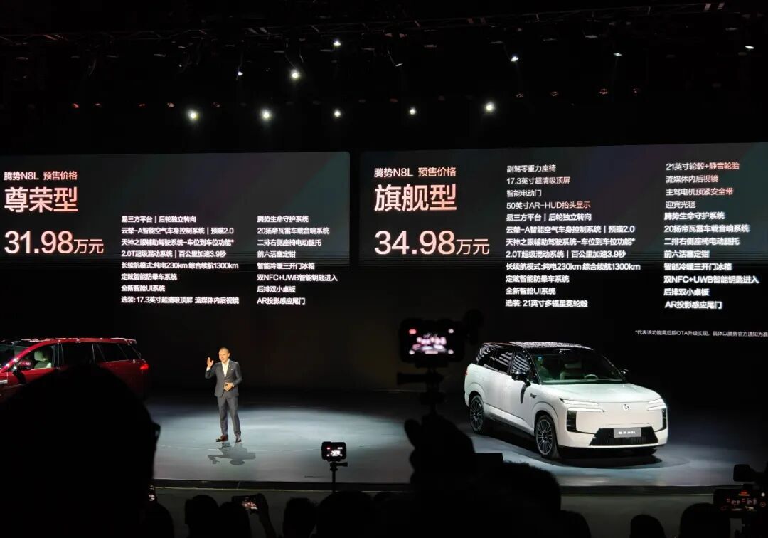 「騰勢N8L預售31.98萬元起。」騰勢汽車總經理李慧官宣新車預售價時,不僅發佈會現場一片震驚,線上發佈會也炸開了鍋,因為這意味着N8L與N9的起售價拉開7萬元差距,未來正式上市時甚至有可能殺入30萬以內區間。