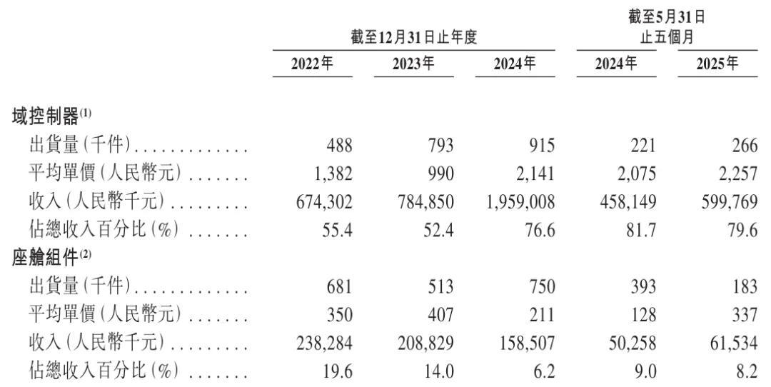 博泰車聯2025年上半年來自域控制器收入為6億元,佔營收的比例為79.6%;出貨量為26.6萬件,平均價格為2257元。