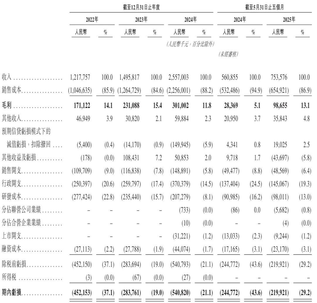 博泰車聯2025年前5個月營收為7.53億元,較上年同期的5.61億元增長34.2%;毛利為9866萬元,上年同期的毛利為2837萬元;毛利率為13.1%,上年同期的毛利率為5.1%。
