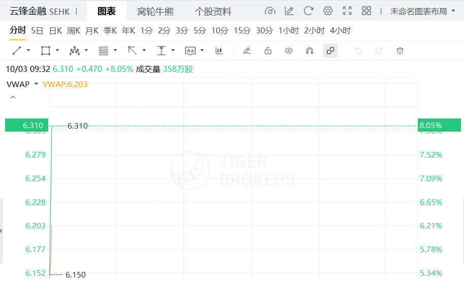 10月3日,雲鋒金融盤初漲超8%,戰略入股加密貨幣人壽保險公司Anthea及簽訂合作備忘錄。