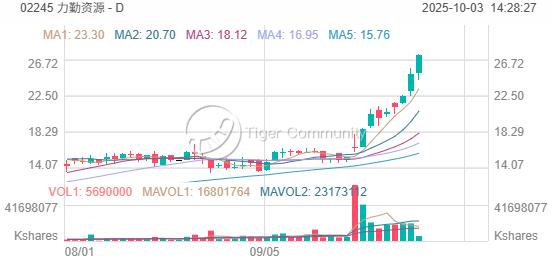 智通財經APP獲悉,力勤資源(02245)力大漲9%再創新高、今年累漲超330%。