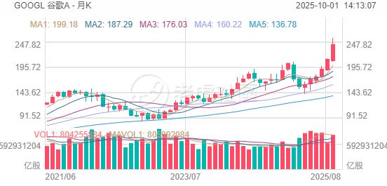 Alphabet股價在第三季度上漲38%,創下自2005年以來的最佳單季表現,其年初至今漲幅超過28%,在「七巨頭」中的表現僅次於英偉達。股價飆升的主要催化劑是其AI產品Gemini的強勁增長,以及谷歌反壟斷案裁決結果好於預期。