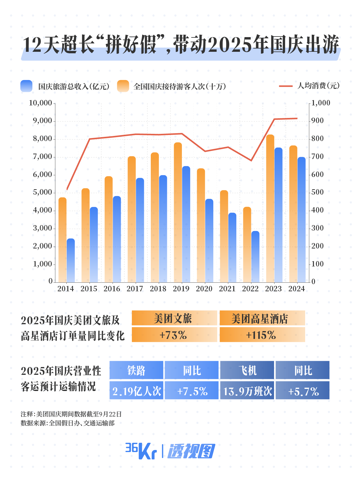 國慶始終是觀察消費變遷的重要窗口,今年超長黃金週的到來,將創各項出行指標的新高。
