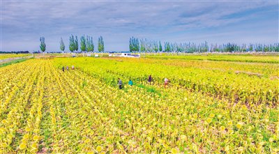 金秋時節,鄂爾多斯市杭錦旗吉日嘎朗圖鎮14萬畝葵花正式進入收割期,集中連片滿眼金黃的葵花與辛勤收割的農民共同構成了節日期間一道豐收的亮麗風景。本報記者 王磊 攝