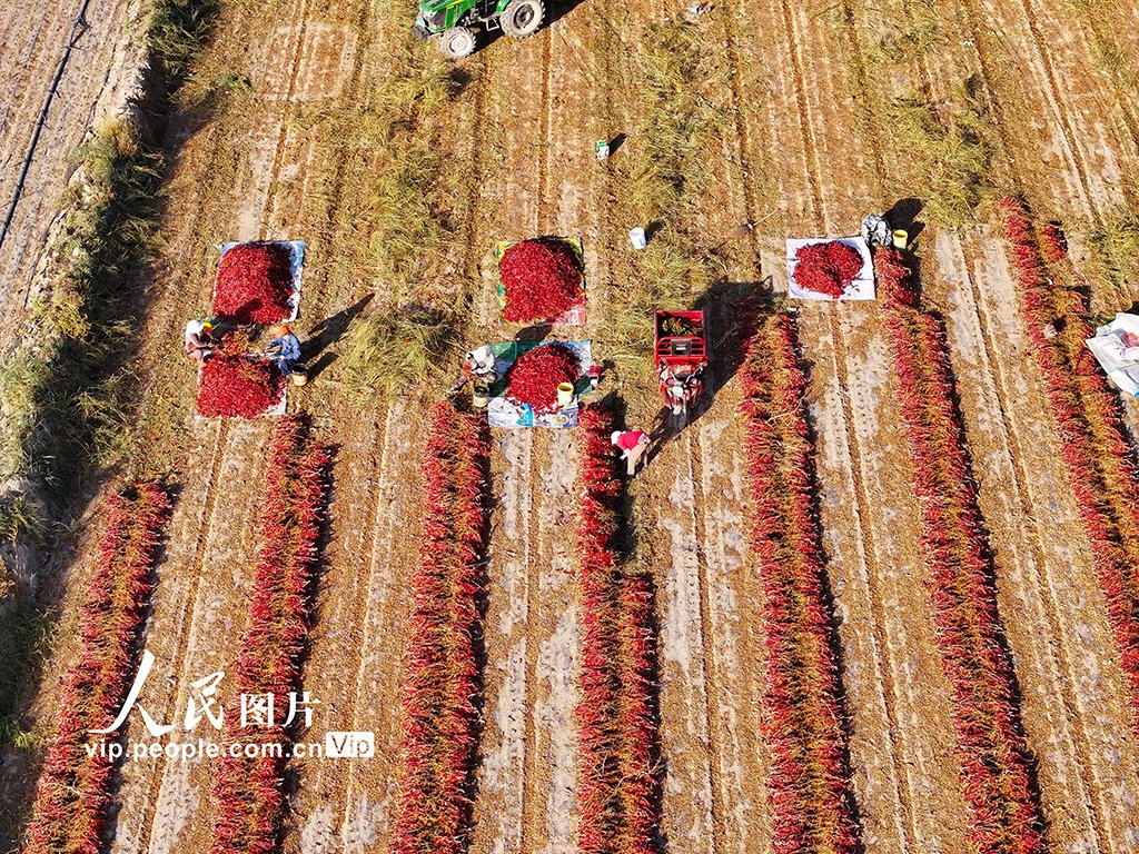 金秋十月,甘肅省酒泉市肅州區下河清鎮玉米、辣椒、甜葉菊等農作物進入豐產豐收期。高宏善攝(人民圖片網)