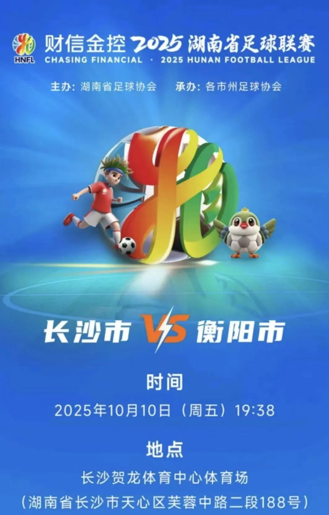 「長沙,球衣顏色不同,但腳下都是湘土!10月10日,讓我們以草皮為紙、足球為筆,共寫一場不負熱愛的‘衡長對決’!」