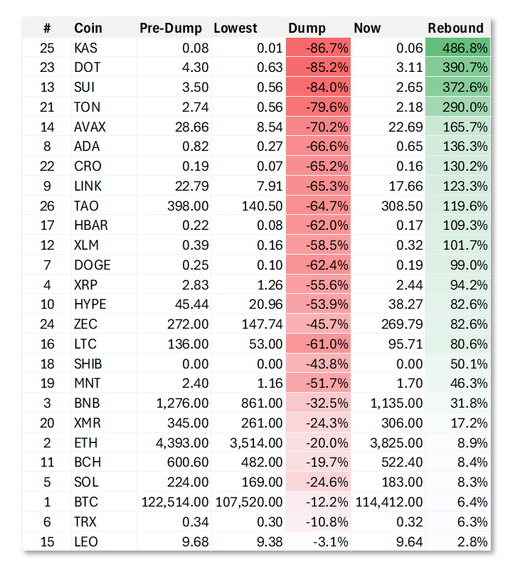 然而,這場災難對所有人來說並非都是壞消息。據CoinDesk報道,數據顯示Hyperliquid上排名前100的交易者合計賺取了16.9億美元,而虧損最多的前100名交易者損失了7.43億美元。這意味着淨利潤高達9.51億美元,集中在少數高度槓桿化的沽空者手中。