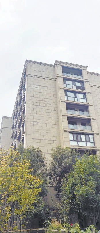 9月27日下午,在該小區2號樓外,記者看到東側牆體的淺黃色牆板接縫處塗着一道道灰色膠體,業主說這些膠體正是維修人員塗抹的防水膠。此外,1號樓、2號樓、13號樓等多棟住宅樓的牆體上,記者均看到牆板裂縫處有塗抹防水材料的痕跡。10月8日一場大雨過後,該小區2號樓一單元10層、13號樓二單元10層等處漏雨,5號樓二單元一業主家門前的牆面與天花板相接處因漏雨成了大花臉,牆面多處鼓包脫落。