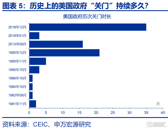 第二,美國政府「關門」預期將持續至10月底,時長遠超歷史中位數,或在中下旬重新成為美元貶值的驅動力之一。截至10月6日,衆議院已通過臨時撥款法案投票,但參議院多次投票均未能達到60票。10月3日最新投票結果為54票反對,44票讚成。Polymarket博彩市場預測顯示,停擺15天以上的概率達67%,可作為市場主流預期;政治壓力層面,10月15日是美國現役軍人發薪日,屆時若仍停擺,或將放大政治與輿論壓力。政府「重啓」需兩黨達成妥協,臨時撥款「對價」交換《平價醫療法案》保費稅收抵免臨時延長的可能性較高。