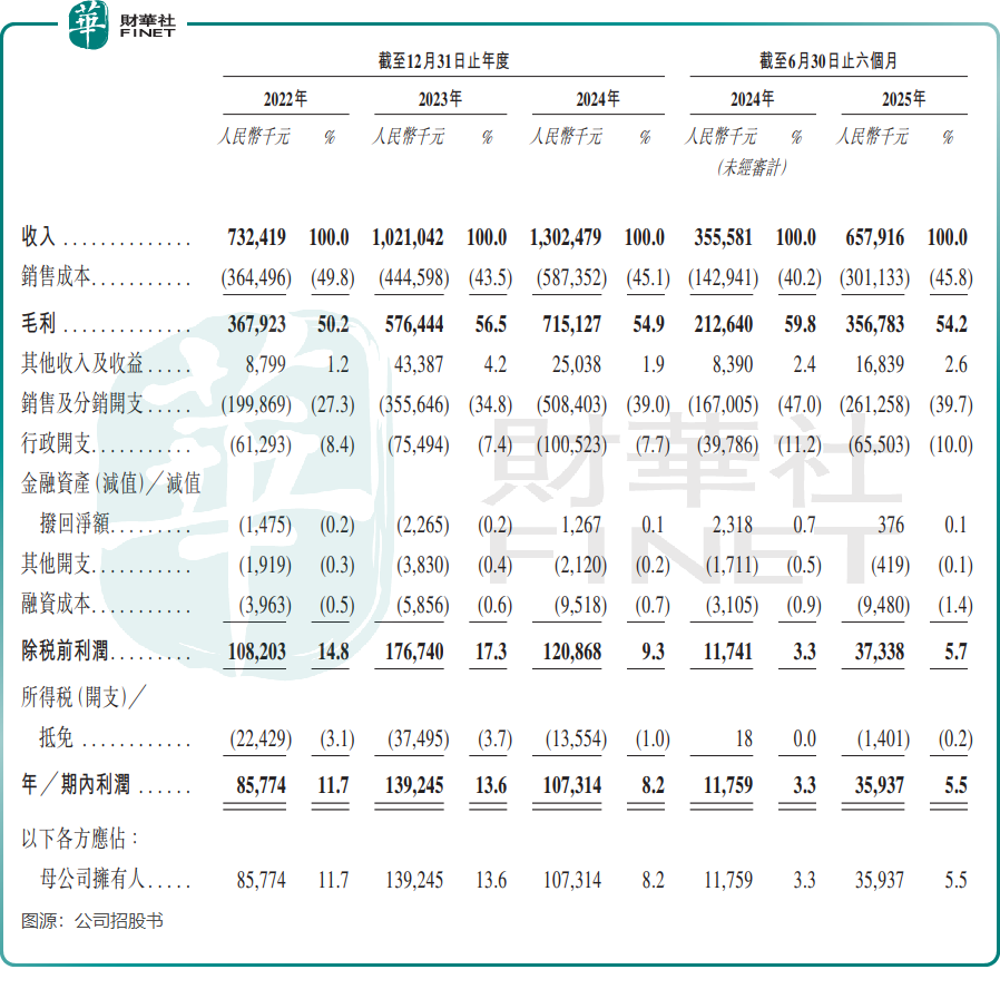 招股書顯示,2022年、2023年、2024年及2025年上半年,坦博爾實現收入分別為7.32億元、10.21億元、13.02億元、6.58億元;同期利潤約為8577.4萬元、1.39億元、1.07億元和3593.7萬元。
