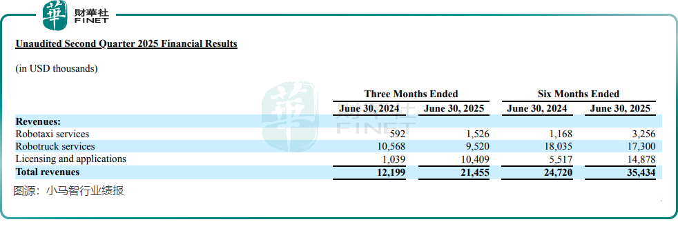 根據兩家公司發佈的2025年第二季度業績,其營收均實現迅猛增長:小馬智行同比增長75.9%,文遠知行同比增長60.8%。隨着Robotaxi服務落地提速,小馬智行Robotaxi服務業務收入激增157.8%至約1090萬元(單位人民幣,下同),文遠知行Robotaxi服務業務收入增長836.7%至4590萬元。