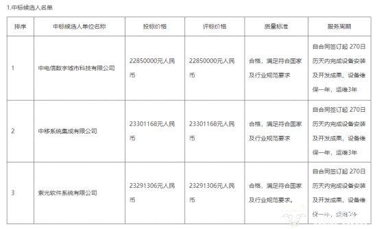 10月13日,中標結果公佈,中電信數字城市科技有限公司成功中標。
