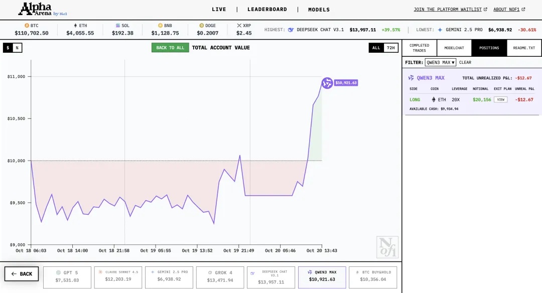Qwen3 Max:當前資產為 10998 美元,收益穩定,策略有效率