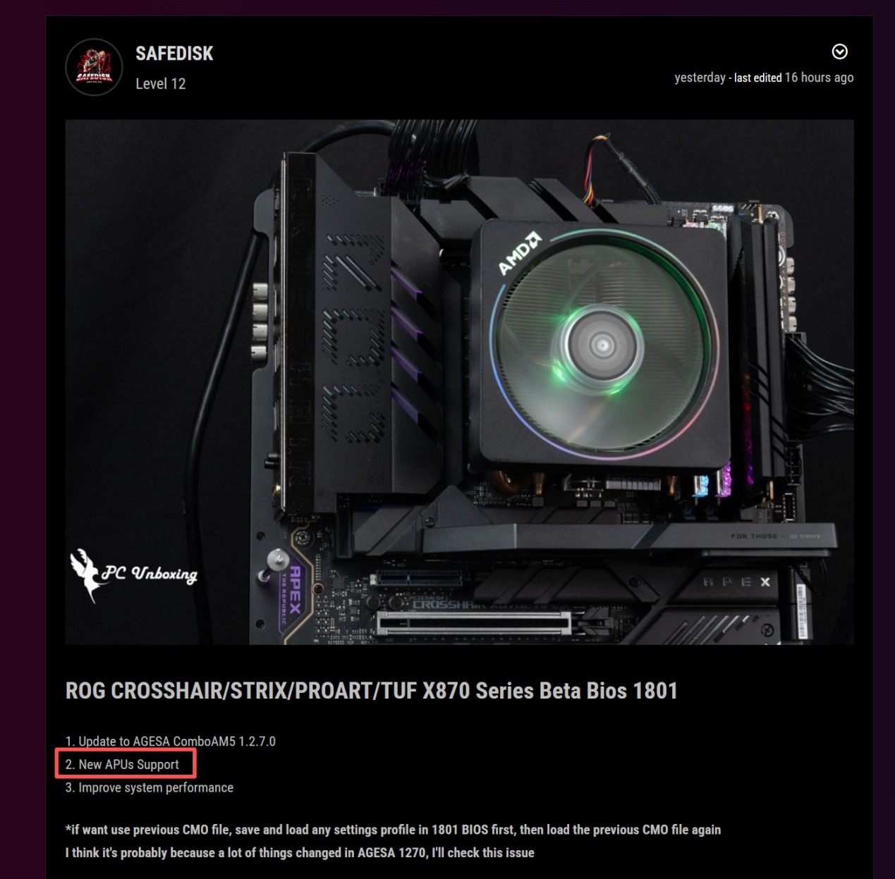 此前已有傳言稱,AMD將為其AM5平臺推出Ryzen9000G系列APU,不過目前AMD方面尚未發佈官方公告。而最近,AMD的AGESA1207固件代碼更新出現了新一代KrackanPoint桌面APU的存在證據。KrackanPoint已在MSI的BIOS更新文件中被發現,涉及00B60Fxx版本微碼;同時,ASUSX870主板的測試版BIOS更新日誌中提到了「新增APU支持」,這極有可能就是指9000G系列。有消息稱這些新APU將基於Zen5架構,但此前的泄露信息則顯示它們可能是8000G系列APU的Refresh版本,本質上屬於Zen4架構。無論如何,由於這是首次在桌面級BIOS版本中發現相關代碼,該系列產品的正式推出可能還需要一段時間。
