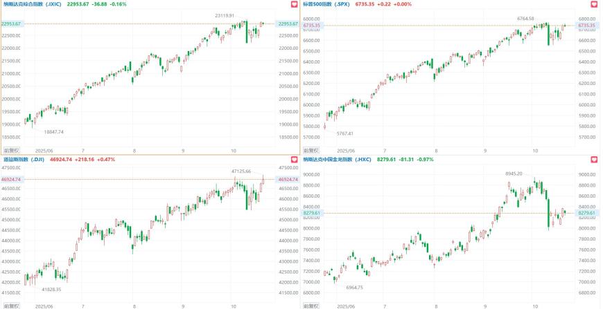 納斯達克金龍中國指數跌0.97%,熱門中概股中,大全新能源跌超5%,阿里蔚來跌超3%,晶科能源、百度、理想、唯品會跌超2%,阿特斯太陽能則漲2%,新東方漲5%,B站與好未來漲6%。