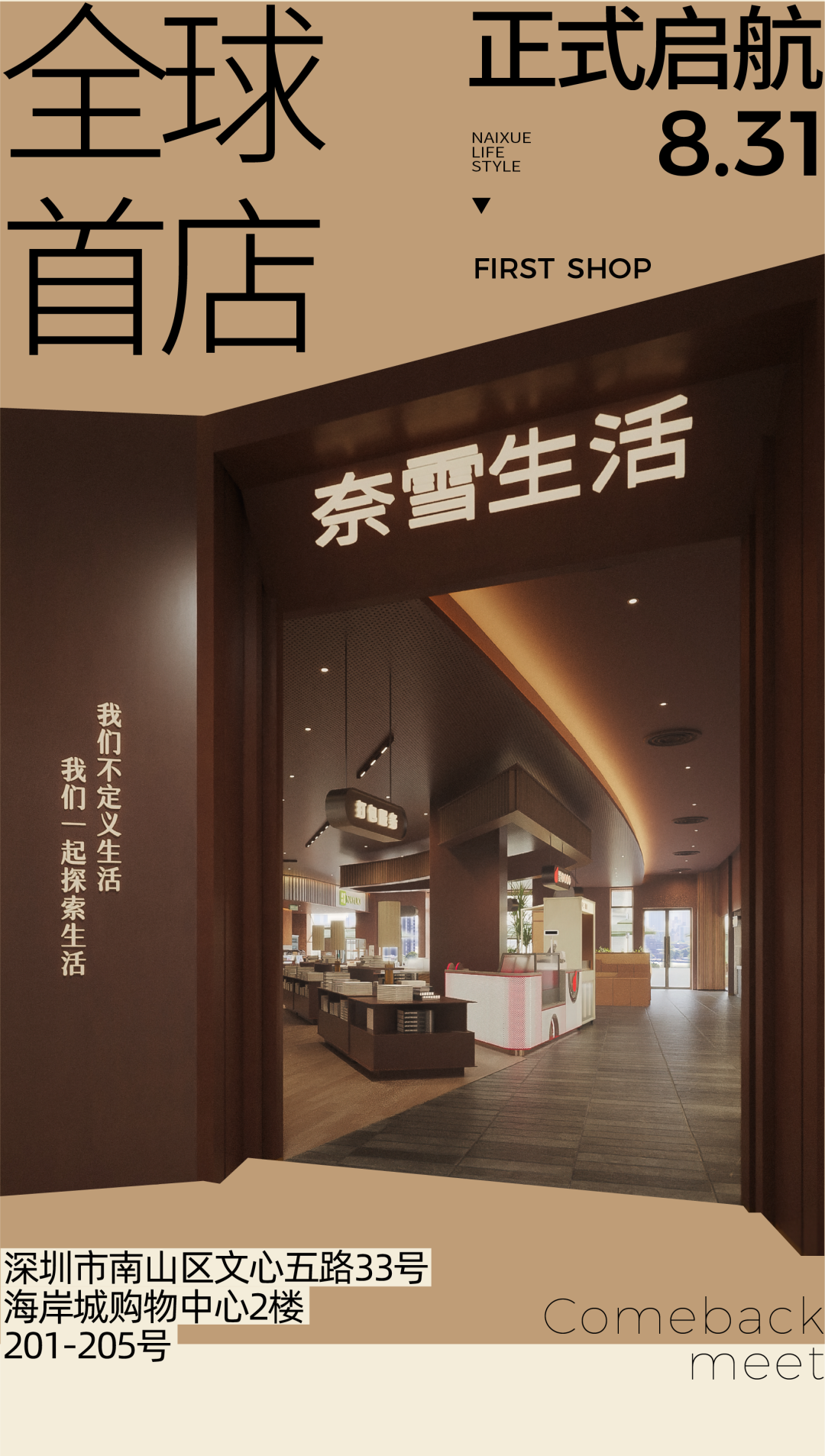 2022年8月31日,全球首家奈雪生活在深圳南山海岸城開業,打造全球首個沉浸式體驗空間,該店前身是奈雪夢工廠。