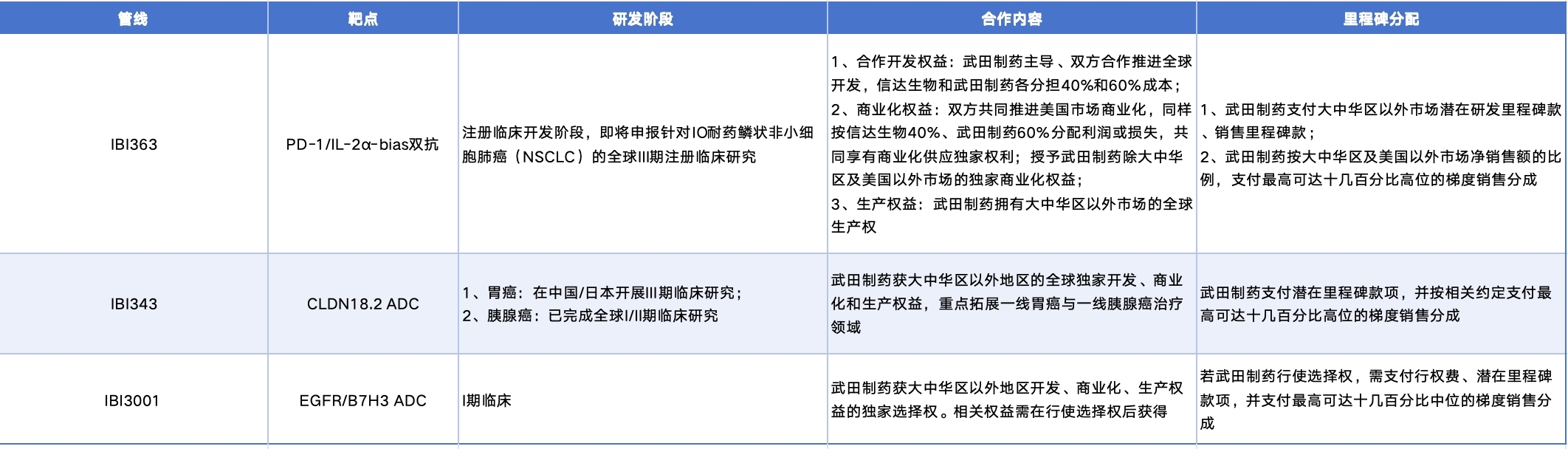 三款產品的具體合作內容示意(數據來源:信達生物公告)