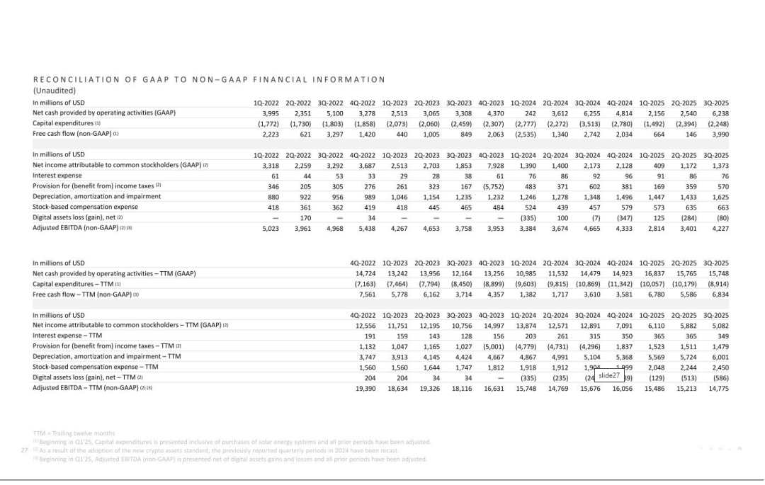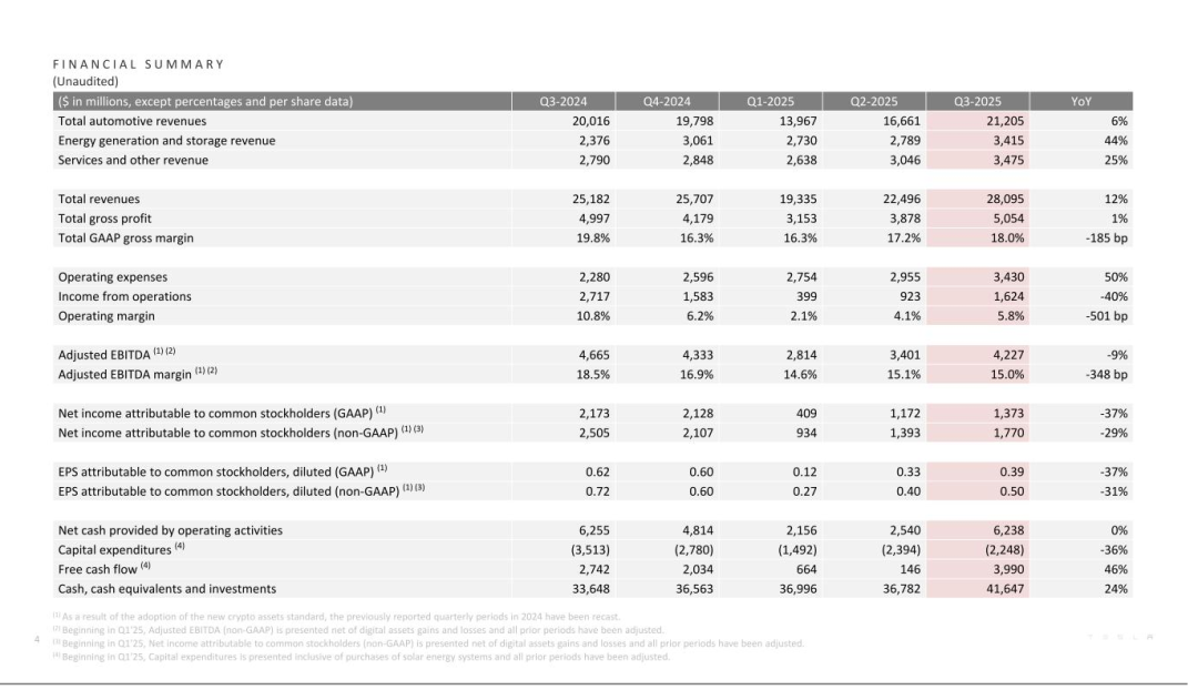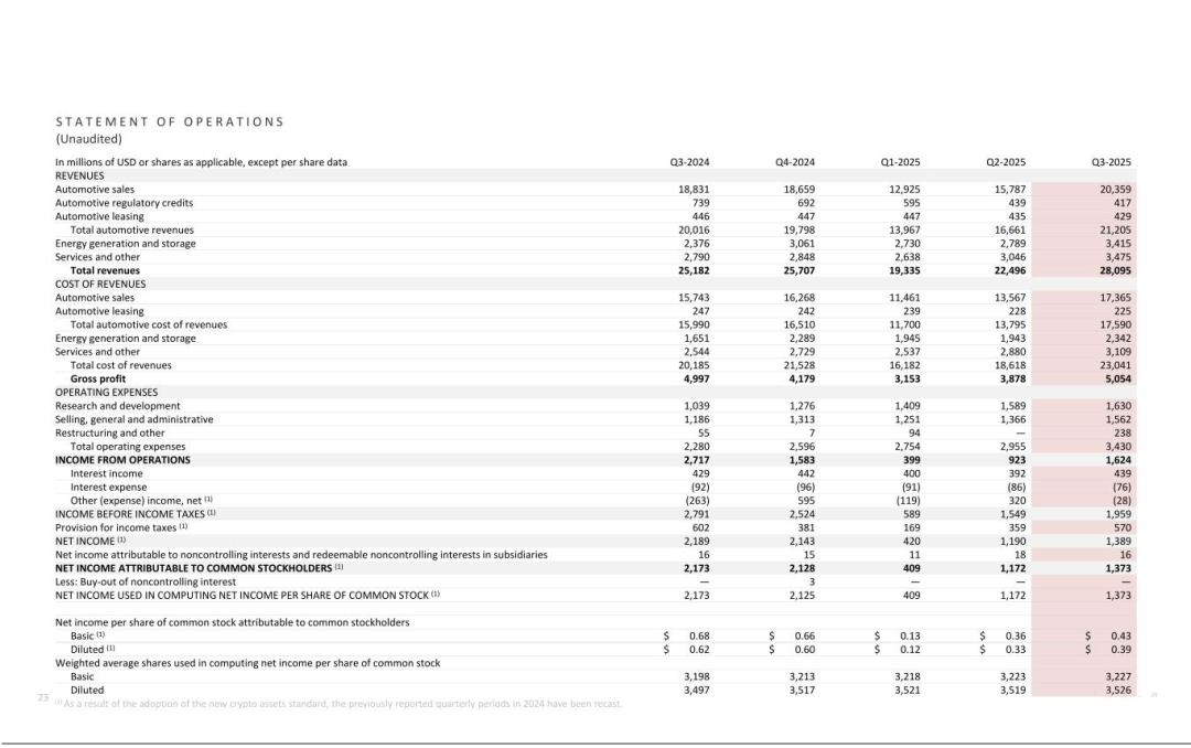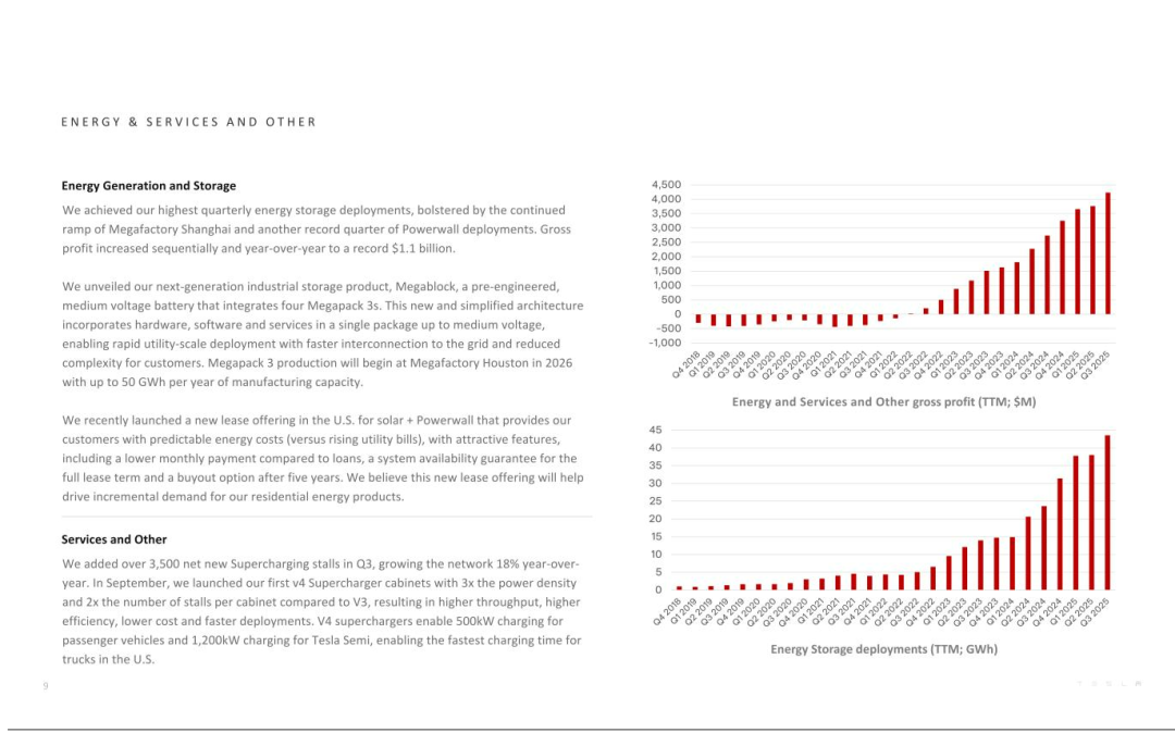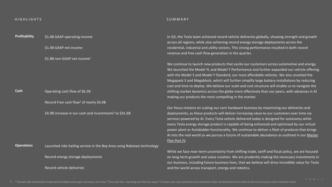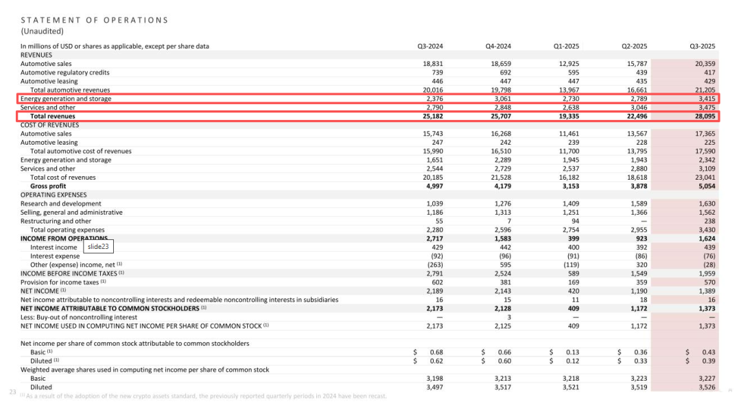 儲能與電力市場獲悉,10月23日,特斯拉發佈2025年第三季度財報。