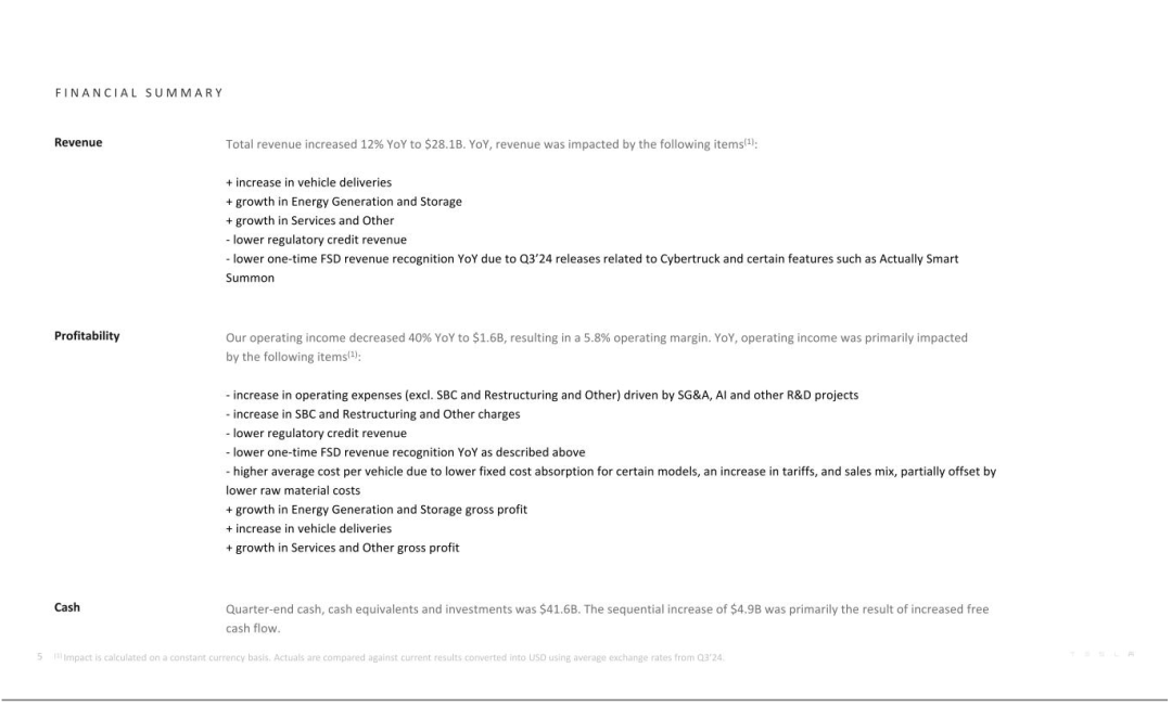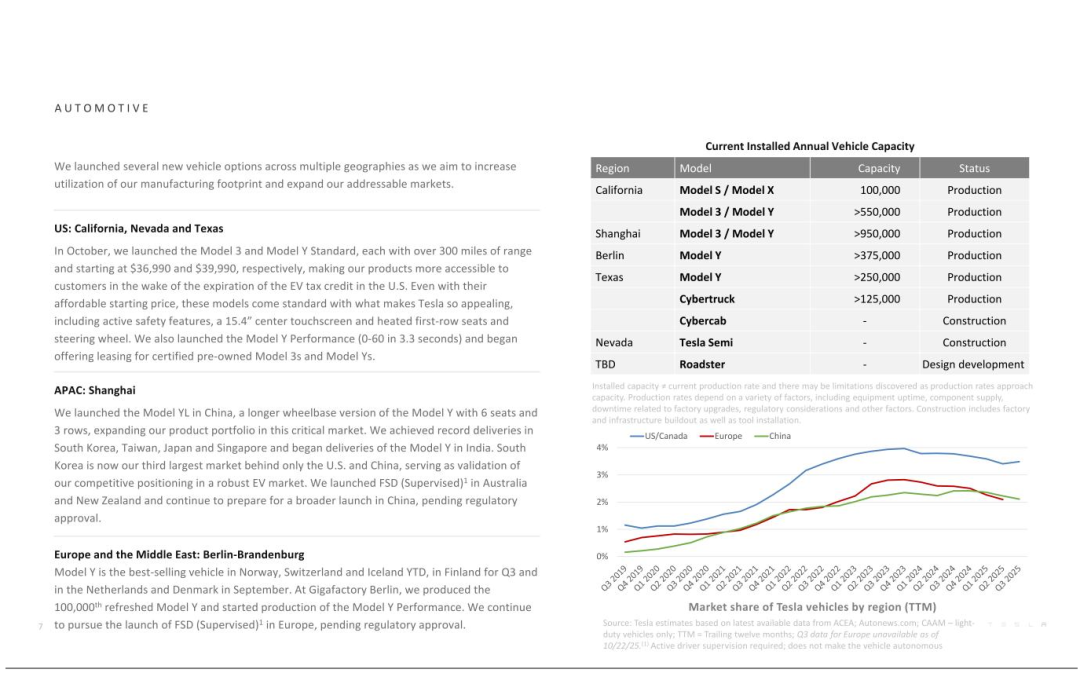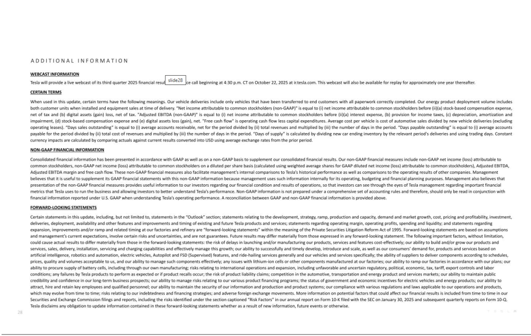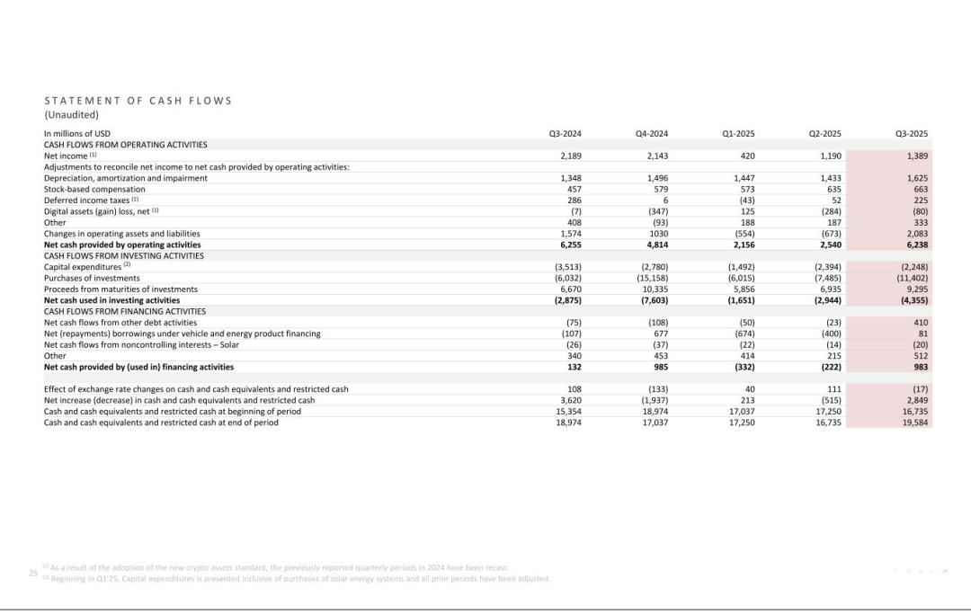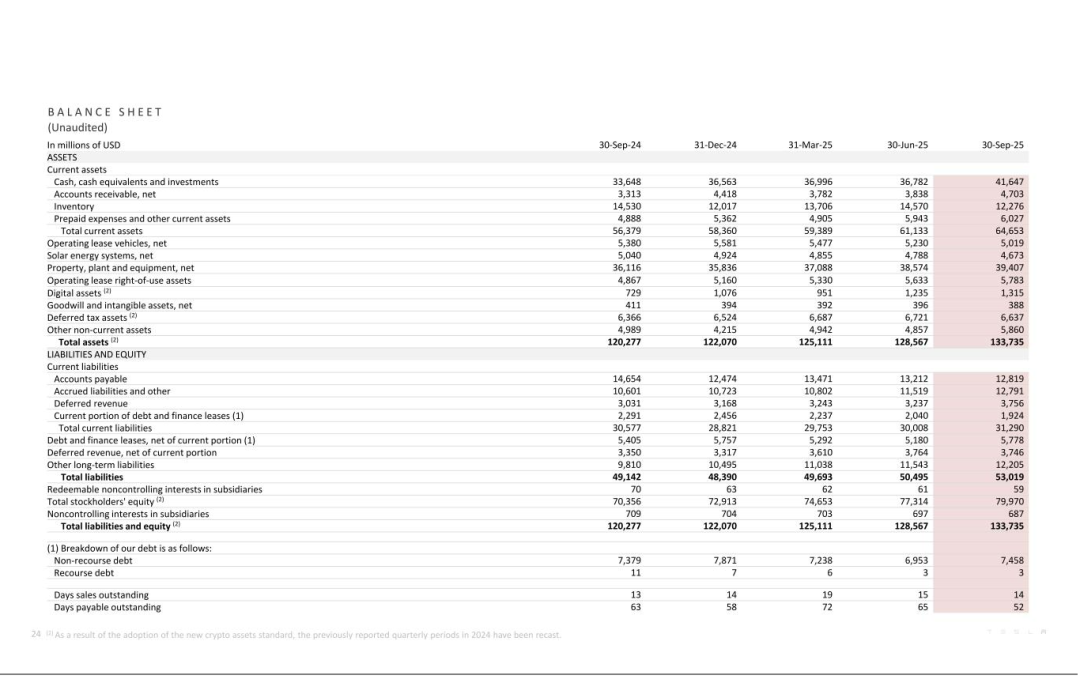 儲能與電力市場獲悉,10月23日,特斯拉發佈2025年第三季度財報。